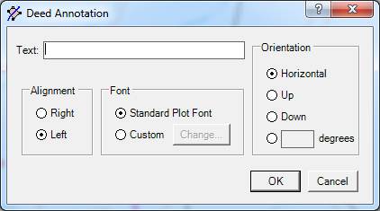 The color of a deed annotation's text is determined by the Plot Style setting. The color of a map annotation's text is determined by the View Options Maps setting.