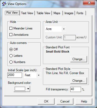 To see this dialog, open the View menu and select Options. Click on the Plot View tab. A number of characteristics of the Plot View can be set, and we encourage you to try experimenting with various combinations.