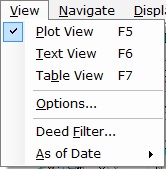 Displays the Plot View. This view shows the plots of your parcels, and any maps you’ve got in your deed file's folder. |